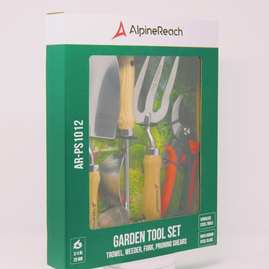 AlpineReach Garden Tool Set - Premium 4 Piece Kit for Gardening, Bypass Pruning Shears, Trowel, Fork, Weeder, Secateurs in Gift Box